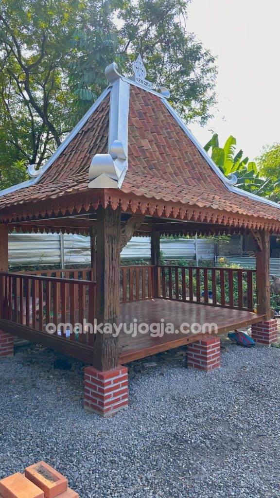 Gazebo identik dengan tempat nongkrong di taman. Memang begitulah deskripsi yang secara umum kita pahami. Dalam konteks yang akan kita bahas kali ini, gazebo yang dimaksud adalah memang bentuk bangunan untuk berteduh, yang biasanya ditempatkan di taman atau halaman rumah, dengan kayu sebagai bahan dominan dalam pembangunannya. Bisa full-kayu maupun dikombinasi dengan yang lainnya, beton dan keramik misalnya..